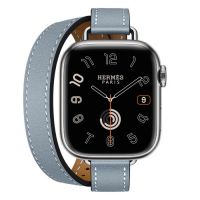 Apple Watch Series 11 Hermes 42 mm Attelage Double Tour Bleu Lin