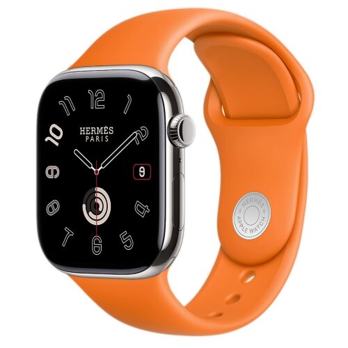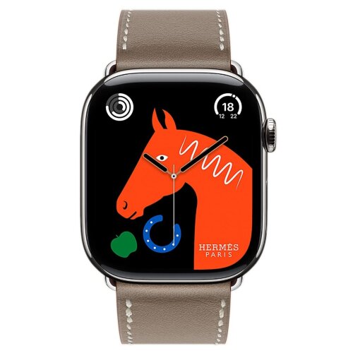 Модель: Apple Watch Hermès Series 11 (GPS + Cellular), коллекция Hermès для Apple Watch Размеры корпусов: 42 мм — 42×36×9,7 мм; 46 мм — 46×39×9,7 мм Масса (титан): 42 мм — 34,6 г; 46 мм — 43,1 г Материал и цвет корпуса: титановый корпус Hermès в оттенке Silver Titanium Дисплей: Always-On Retina (LTPO, wide-angle OLED), 326 ppi; 374×446 px (42 мм), 416×496 px (46 мм); до 2000 нит (пик), минимум 1 нит; сапфировое стекло на титановых моделях Стойкость: водонепроницаемость 50 м (ISO 22810:2010, для плавания); пылезащита IP6X Процессор и память: чип S10 с 64-битным двухъядерным CPU, 4-ядерным Neural Engine; 64 ГБ встроенной памяти Датчики: электрический датчик сердечного ритма (ЭКГ), оптический датчик сердечного ритма (3-е поколение), датчик уровня кислорода в крови, датчик температуры, компас, всегда-включённый высотомер, высоко-g акселерометр, гироскоп с расширенным ДД, датчик освещённости, датчик глубины до 6 м и датчик температуры воды Здоровье и безопасность: приложения «ЭКГ», «Кислород в крови», «Сон» (вкл. стадии и sleep score), уведомления о высоком/низком пульсе и нарушениях ритма, уведомления о признаках гипертонии, Crash Detection, Fall Detection, Emergency SOS, международные экстренные вызовы Связь и позиционирование: L1 GPS, GLONASS, Galileo, QZSS, BeiDou; поддержка сотовых сетей LTE и 5G RedCap; Wi-Fi 4 (2,4/5 ГГц), Bluetooth 5.3, чип Ultra Wideband 2-го поколения; Apple Pay, GymKit, международный роуминг Аккумулятор и зарядка: до 24 ч обычного использования; до 38 ч в режиме пониженного энергопотребления; быстрая зарядка: ~30 мин до 80%, 15 мин — до 8 ч обычного использования / 5 мин — до 8 ч отслеживания сна; кабель магнитной быстрой зарядки USB-C в комплекте Совместимость: iPhone 11 и новее с iOS 26 или новее Жесты и управление: Digital Crown с тактильной отдачей, боковая кнопка, жест «двойное касание» и жест взмахом запястья, Siri с обработкой на устройстве Спортивные режимы: настраиваемые тренировки, Training Load, Зоны пульса, Race Route, Pacer, бег по треку (авто-распознавание), велодатчики по Bluetooth; плавание в бассейне и открытой воде (SWOLF, автоматическое определение стиля и др.) Hermès-особенности: эксклюзивные циферблаты Hermès (в т.ч. Radial, Circulaire, Faubourg Party с 24 анимациями); фирменные ремешки Hermès (Kilim Single Tour, Satiné Grand H/Grand H Fin, Toile H Single Tour, Twill Jump Attelage и др.) Диапазон охвата запястья: 42 мм — 130–200 мм; 46 мм — 140–245 мм (в зависимости от ремешка) Комплектация: Apple Watch Hermès Series 11, выбранный ремешок Hermès, кабель Apple Watch Magnetic Fast Charger to USB-C (1 м), фирменный спортивный ремешок оранжевого цвета, документация