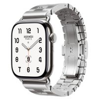 Модель: Apple Watch Hermès Series 11 (GPS + Cellular), коллекция Hermès для Apple Watch Размеры корпусов: 42 мм — 42×36×9,7 мм; 46 мм — 46×39×9,7 мм Масса (титан): 42 мм — 34,6 г; 46 мм — 43,1 г Материал и цвет корпуса: титановый корпус Hermès в оттенке Silver Titanium Дисплей: Always-On Retina (LTPO, wide-angle OLED), 326 ppi; 374×446 px (42 мм), 416×496 px (46 мм); до 2000 нит (пик), минимум 1 нит; сапфировое стекло на титановых моделях Стойкость: водонепроницаемость 50 м (ISO 22810:2010, для плавания); пылезащита IP6X Процессор и память: чип S10 с 64-битным двухъядерным CPU, 4-ядерным Neural Engine; 64 ГБ встроенной памяти Датчики: электрический датчик сердечного ритма (ЭКГ), оптический датчик сердечного ритма (3-е поколение), датчик уровня кислорода в крови, датчик температуры, компас, всегда-включённый высотомер, высоко-g акселерометр, гироскоп с расширенным ДД, датчик освещённости, датчик глубины до 6 м и датчик температуры воды Здоровье и безопасность: приложения «ЭКГ», «Кислород в крови», «Сон» (вкл. стадии и sleep score), уведомления о высоком/низком пульсе и нарушениях ритма, уведомления о признаках гипертонии, Crash Detection, Fall Detection, Emergency SOS, международные экстренные вызовы Связь и позиционирование: L1 GPS, GLONASS, Galileo, QZSS, BeiDou; поддержка сотовых сетей LTE и 5G RedCap; Wi-Fi 4 (2,4/5 ГГц), Bluetooth 5.3, чип Ultra Wideband 2-го поколения; Apple Pay, GymKit, международный роуминг Аккумулятор и зарядка: до 24 ч обычного использования; до 38 ч в режиме пониженного энергопотребления; быстрая зарядка: ~30 мин до 80%, 15 мин — до 8 ч обычного использования / 5 мин — до 8 ч отслеживания сна; кабель магнитной быстрой зарядки USB-C в комплекте Совместимость: iPhone 11 и новее с iOS 26 или новее Жесты и управление: Digital Crown с тактильной отдачей, боковая кнопка, жест «двойное касание» и жест взмахом запястья, Siri с обработкой на устройстве Спортивные режимы: настраиваемые тренировки, Training Load, Зоны пульса, Race Route, Pacer, бег по треку (авто-распознавание), велодатчики по Bluetooth; плавание в бассейне и открытой воде (SWOLF, автоматическое определение стиля и др.) Hermès-особенности: эксклюзивные циферблаты Hermès (в т.ч. Radial, Circulaire, Faubourg Party с 24 анимациями); фирменные ремешки Hermès (Kilim Single Tour, Satiné Grand H/Grand H Fin, Toile H Single Tour, Twill Jump Attelage и др.) Диапазон охвата запястья: 42 мм — 130–200 мм; 46 мм — 140–245 мм (в зависимости от ремешка) Комплектация: Apple Watch Hermès Series 11, выбранный ремешок Hermès, кабель Apple Watch Magnetic Fast Charger to USB-C (1 м), фирменный спортивный ремешок оранжевого цвета, документация