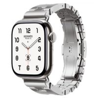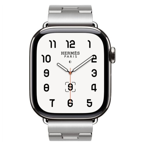 Модель: Apple Watch Hermès Series 11 (GPS + Cellular), коллекция Hermès для Apple Watch Размеры корпусов: 42 мм — 42×36×9,7 мм; 46 мм — 46×39×9,7 мм Масса (титан): 42 мм — 34,6 г; 46 мм — 43,1 г Материал и цвет корпуса: титановый корпус Hermès в оттенке Silver Titanium Дисплей: Always-On Retina (LTPO, wide-angle OLED), 326 ppi; 374×446 px (42 мм), 416×496 px (46 мм); до 2000 нит (пик), минимум 1 нит; сапфировое стекло на титановых моделях Стойкость: водонепроницаемость 50 м (ISO 22810:2010, для плавания); пылезащита IP6X Процессор и память: чип S10 с 64-битным двухъядерным CPU, 4-ядерным Neural Engine; 64 ГБ встроенной памяти Датчики: электрический датчик сердечного ритма (ЭКГ), оптический датчик сердечного ритма (3-е поколение), датчик уровня кислорода в крови, датчик температуры, компас, всегда-включённый высотомер, высоко-g акселерометр, гироскоп с расширенным ДД, датчик освещённости, датчик глубины до 6 м и датчик температуры воды Здоровье и безопасность: приложения «ЭКГ», «Кислород в крови», «Сон» (вкл. стадии и sleep score), уведомления о высоком/низком пульсе и нарушениях ритма, уведомления о признаках гипертонии, Crash Detection, Fall Detection, Emergency SOS, международные экстренные вызовы Связь и позиционирование: L1 GPS, GLONASS, Galileo, QZSS, BeiDou; поддержка сотовых сетей LTE и 5G RedCap; Wi-Fi 4 (2,4/5 ГГц), Bluetooth 5.3, чип Ultra Wideband 2-го поколения; Apple Pay, GymKit, международный роуминг Аккумулятор и зарядка: до 24 ч обычного использования; до 38 ч в режиме пониженного энергопотребления; быстрая зарядка: ~30 мин до 80%, 15 мин — до 8 ч обычного использования / 5 мин — до 8 ч отслеживания сна; кабель магнитной быстрой зарядки USB-C в комплекте Совместимость: iPhone 11 и новее с iOS 26 или новее Жесты и управление: Digital Crown с тактильной отдачей, боковая кнопка, жест «двойное касание» и жест взмахом запястья, Siri с обработкой на устройстве Спортивные режимы: настраиваемые тренировки, Training Load, Зоны пульса, Race Route, Pacer, бег по треку (авто-распознавание), велодатчики по Bluetooth; плавание в бассейне и открытой воде (SWOLF, автоматическое определение стиля и др.) Hermès-особенности: эксклюзивные циферблаты Hermès (в т.ч. Radial, Circulaire, Faubourg Party с 24 анимациями); фирменные ремешки Hermès (Kilim Single Tour, Satiné Grand H/Grand H Fin, Toile H Single Tour, Twill Jump Attelage и др.) Диапазон охвата запястья: 42 мм — 130–200 мм; 46 мм — 140–245 мм (в зависимости от ремешка) Комплектация: Apple Watch Hermès Series 11, выбранный ремешок Hermès, кабель Apple Watch Magnetic Fast Charger to USB-C (1 м), фирменный спортивный ремешок оранжевого цвета, документация