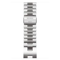 Модель: Apple Watch Hermès Series 11 (GPS + Cellular), коллекция Hermès для Apple Watch Размеры корпусов: 42 мм — 42×36×9,7 мм; 46 мм — 46×39×9,7 мм Масса (титан): 42 мм — 34,6 г; 46 мм — 43,1 г Материал и цвет корпуса: титановый корпус Hermès в оттенке Silver Titanium Дисплей: Always-On Retina (LTPO, wide-angle OLED), 326 ppi; 374×446 px (42 мм), 416×496 px (46 мм); до 2000 нит (пик), минимум 1 нит; сапфировое стекло на титановых моделях Стойкость: водонепроницаемость 50 м (ISO 22810:2010, для плавания); пылезащита IP6X Процессор и память: чип S10 с 64-битным двухъядерным CPU, 4-ядерным Neural Engine; 64 ГБ встроенной памяти Датчики: электрический датчик сердечного ритма (ЭКГ), оптический датчик сердечного ритма (3-е поколение), датчик уровня кислорода в крови, датчик температуры, компас, всегда-включённый высотомер, высоко-g акселерометр, гироскоп с расширенным ДД, датчик освещённости, датчик глубины до 6 м и датчик температуры воды Здоровье и безопасность: приложения «ЭКГ», «Кислород в крови», «Сон» (вкл. стадии и sleep score), уведомления о высоком/низком пульсе и нарушениях ритма, уведомления о признаках гипертонии, Crash Detection, Fall Detection, Emergency SOS, международные экстренные вызовы Связь и позиционирование: L1 GPS, GLONASS, Galileo, QZSS, BeiDou; поддержка сотовых сетей LTE и 5G RedCap; Wi-Fi 4 (2,4/5 ГГц), Bluetooth 5.3, чип Ultra Wideband 2-го поколения; Apple Pay, GymKit, международный роуминг Аккумулятор и зарядка: до 24 ч обычного использования; до 38 ч в режиме пониженного энергопотребления; быстрая зарядка: ~30 мин до 80%, 15 мин — до 8 ч обычного использования / 5 мин — до 8 ч отслеживания сна; кабель магнитной быстрой зарядки USB-C в комплекте Совместимость: iPhone 11 и новее с iOS 26 или новее Жесты и управление: Digital Crown с тактильной отдачей, боковая кнопка, жест «двойное касание» и жест взмахом запястья, Siri с обработкой на устройстве Спортивные режимы: настраиваемые тренировки, Training Load, Зоны пульса, Race Route, Pacer, бег по треку (авто-распознавание), велодатчики по Bluetooth; плавание в бассейне и открытой воде (SWOLF, автоматическое определение стиля и др.) Hermès-особенности: эксклюзивные циферблаты Hermès (в т.ч. Radial, Circulaire, Faubourg Party с 24 анимациями); фирменные ремешки Hermès (Kilim Single Tour, Satiné Grand H/Grand H Fin, Toile H Single Tour, Twill Jump Attelage и др.) Диапазон охвата запястья: 42 мм — 130–200 мм; 46 мм — 140–245 мм (в зависимости от ремешка) Комплектация: Apple Watch Hermès Series 11, выбранный ремешок Hermès, кабель Apple Watch Magnetic Fast Charger to USB-C (1 м), фирменный спортивный ремешок оранжевого цвета, документация