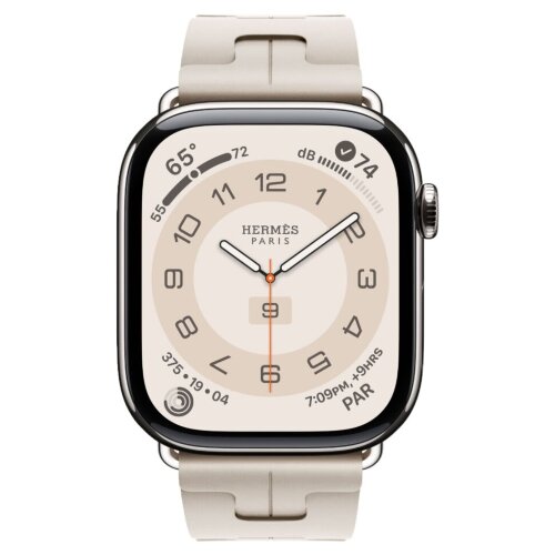 Модель: Apple Watch Hermès Series 11 (GPS + Cellular), коллекция Hermès для Apple Watch Размеры корпусов: 42 мм — 42×36×9,7 мм; 46 мм — 46×39×9,7 мм Масса (титан): 42 мм — 34,6 г; 46 мм — 43,1 г Материал и цвет корпуса: титановый корпус Hermès в оттенке Silver Titanium Дисплей: Always-On Retina (LTPO, wide-angle OLED), 326 ppi; 374×446 px (42 мм), 416×496 px (46 мм); до 2000 нит (пик), минимум 1 нит; сапфировое стекло на титановых моделях Стойкость: водонепроницаемость 50 м (ISO 22810:2010, для плавания); пылезащита IP6X Процессор и память: чип S10 с 64-битным двухъядерным CPU, 4-ядерным Neural Engine; 64 ГБ встроенной памяти Датчики: электрический датчик сердечного ритма (ЭКГ), оптический датчик сердечного ритма (3-е поколение), датчик уровня кислорода в крови, датчик температуры, компас, всегда-включённый высотомер, высоко-g акселерометр, гироскоп с расширенным ДД, датчик освещённости, датчик глубины до 6 м и датчик температуры воды Здоровье и безопасность: приложения «ЭКГ», «Кислород в крови», «Сон» (вкл. стадии и sleep score), уведомления о высоком/низком пульсе и нарушениях ритма, уведомления о признаках гипертонии, Crash Detection, Fall Detection, Emergency SOS, международные экстренные вызовы Связь и позиционирование: L1 GPS, GLONASS, Galileo, QZSS, BeiDou; поддержка сотовых сетей LTE и 5G RedCap; Wi-Fi 4 (2,4/5 ГГц), Bluetooth 5.3, чип Ultra Wideband 2-го поколения; Apple Pay, GymKit, международный роуминг Аккумулятор и зарядка: до 24 ч обычного использования; до 38 ч в режиме пониженного энергопотребления; быстрая зарядка: ~30 мин до 80%, 15 мин — до 8 ч обычного использования / 5 мин — до 8 ч отслеживания сна; кабель магнитной быстрой зарядки USB-C в комплекте Совместимость: iPhone 11 и новее с iOS 26 или новее Жесты и управление: Digital Crown с тактильной отдачей, боковая кнопка, жест «двойное касание» и жест взмахом запястья, Siri с обработкой на устройстве Спортивные режимы: настраиваемые тренировки, Training Load, Зоны пульса, Race Route, Pacer, бег по треку (авто-распознавание), велодатчики по Bluetooth; плавание в бассейне и открытой воде (SWOLF, автоматическое определение стиля и др.) Hermès-особенности: эксклюзивные циферблаты Hermès (в т.ч. Radial, Circulaire, Faubourg Party с 24 анимациями); фирменные ремешки Hermès (Kilim Single Tour, Satiné Grand H/Grand H Fin, Toile H Single Tour, Twill Jump Attelage и др.) Диапазон охвата запястья: 42 мм — 130–200 мм; 46 мм — 140–245 мм (в зависимости от ремешка) Комплектация: Apple Watch Hermès Series 11, выбранный ремешок Hermès, кабель Apple Watch Magnetic Fast Charger to USB-C (1 м), фирменный спортивный ремешок оранжевого цвета, документация